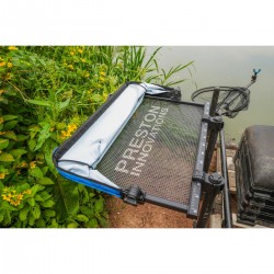 Tacka Preston Ventalite Hoodie Side Tray - XL - boczna tacka z parawanem, która może pomieścić do 8 pojemników z zanętą i przynętami w zależności od ich rozmiaru. Idealna wielkość dla tych, którzy nie potrzebują dużych ilości zanęty i przynęt. Jest wyposażona w parawan, który ma zatrzaskową konstrukcję umożliwiającą szybki demontaż. Wykonana z wodoodpornego materiału w jasnym kolorze, co pomaga zmniejszyć absorbowanie ciepła. Perforowana podstawa Ventamesh, sprzyja odprowadzaniu wody, a jednocześnie umożliwia cyrkulację powietrza, dzięki czemu tacka jest idealna do użytku przez cały rok.